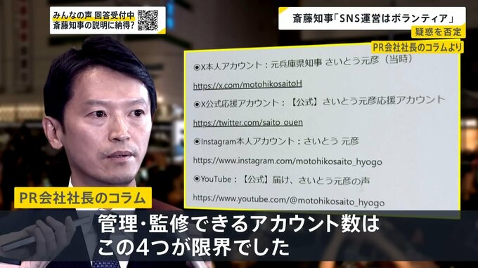 斎藤知事「SNS運営はボランティア」 疑惑を否定