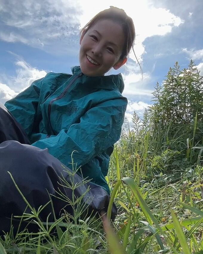 そして「山ウェアは畑でも大活躍。」「大きく豊かに育つことを願うばかりです」と、緑の中で微笑む画像や、畑で収穫された野菜の画像をアップしました。