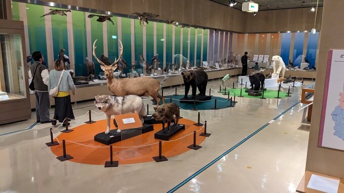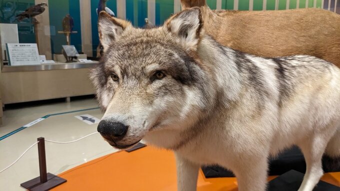 オオカミやクマ類、イヌワシなどの大型の捕食者と、それらの多種多様な食事内容を実物標本やレプリカなどで詳しく紹介した企画展が、盛岡市の岩手県立博物館で開かれています。