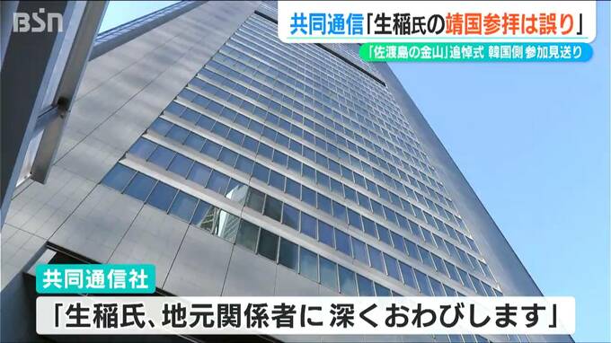 共同通信社は「生稲氏をはじめ、新潟県や佐渡市、地元関係者にご迷惑をおかけし、深くおわびします」と謝罪しています。