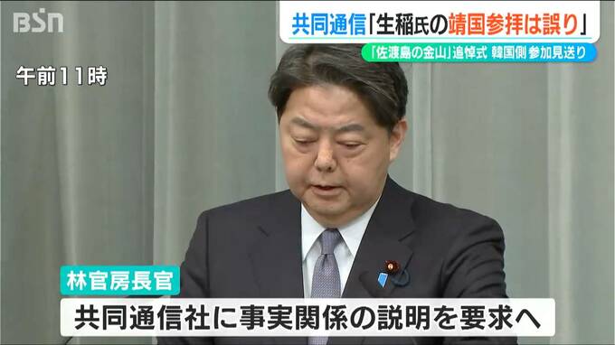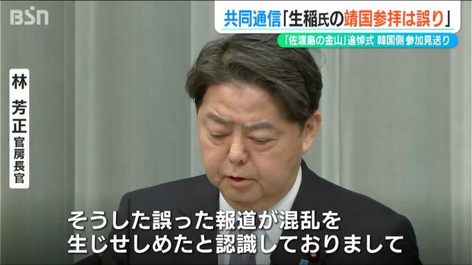 また林官房長官は会見の中で、「事実に基づかない報道がなされたこと、また、『佐渡金山の追悼式』について、そうした誤った報道が混乱を生じせしめたと認識しておりまして、極めて遺憾であります」とも述べています。