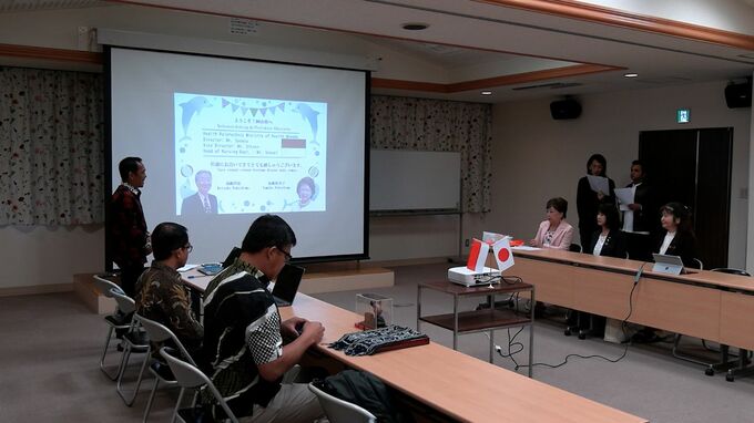 介護施設を運営するドルフィンエイドの福嶋裕美子社長が、「インドネシア国家看護師連盟」の顧問に就任したことをきっかけに、国際貢献になればと招いたものです。