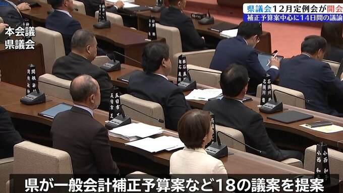 県議会12月定例会の会期は12月9日までの14日間で、12月2日からの3日間、一般質問が行われます。