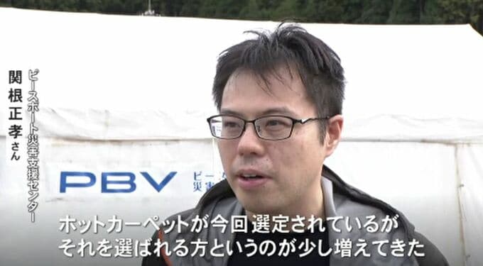 ピースボート災害支援センター・関根正孝さん「最近、ホットカーペットを選ばれる方が増えているように感じる」「しっかり暖をとって体調を崩さないように活用してほしい」