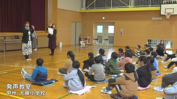 小学校でアナウンサーによる発声の教室が開かれ、児童が伝わりやすい話し方を学びました。