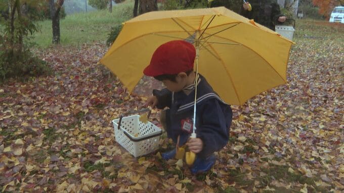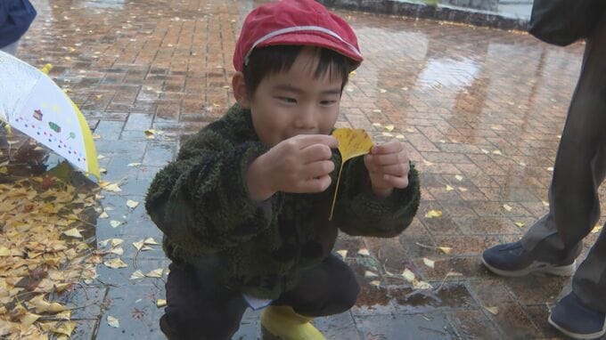 落ち葉から人気の「開運イチョウカード」を作ろうと、初代総理大臣・伊藤博文の出身地である山口県光市で26日、園児らがイチョウの葉を拾いました。