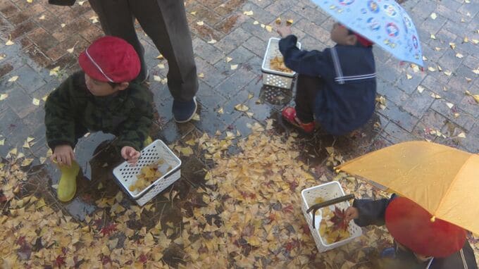 あいにくの天気となりましたが、雨にも負けず、きれいなイチョウの葉を見つけ、拾っていきました。