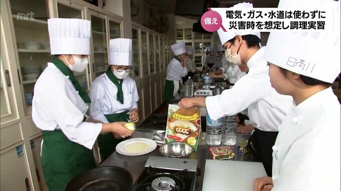 災害発生時、生活で困ることの一つが「食事」です。調理師やパティシエを養成する宮崎市の専門学校では、水やガスが使えない中、限られた材料で食事を作る実習が行われました。実習には、マナビヤ宮崎アカデミーの…