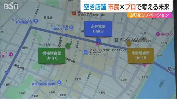 受講生は3つのチームに分かれ、古町にある空き店舗の活用方法を検討。