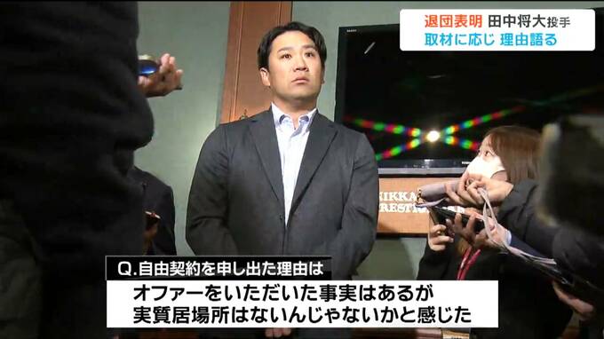 球団との交渉の末自ら自由契約を球団に申し出た理由について、田中投手は「オファーをいただいた事実はありますけど、個人的には実質、居場所はないんじゃないか」と感じたことを明かしました。