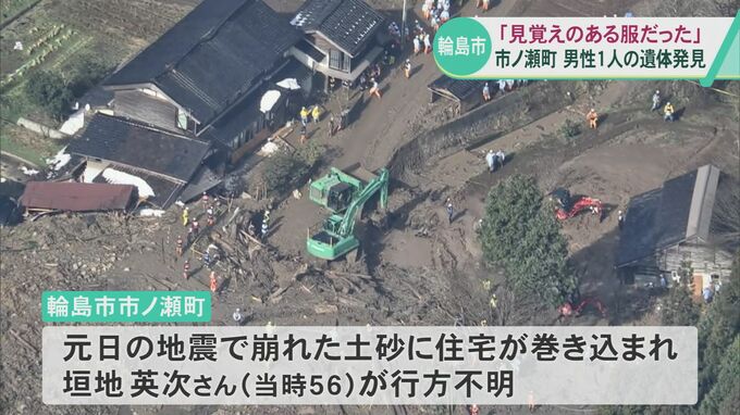 能登半島地震で土砂崩れが発生し、1人が行方不明となっている石川県輪島市の捜索現場で25日夜、男性1人の遺体が見つかりました。行方不明になっている男性の兄は「着ている服は見覚えのある服」と話していて、遺体はこの男性の可能性があるとみて警察で特定を進めています。