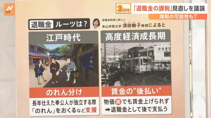 退職金制度に詳しい青山学院大学の須田敏子教授によると、江戸時代にさかのぼるといいます。