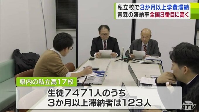 青森県内の私立高校で今年度上半期に学費を3か月以上滞納した生徒の割合は、全体の1.65%で全国で3番目に高いことがわかりました。