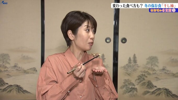 「干し柿の甘さって不思議で美味しいですね。自然なのにすごく甘いですよね。田舎に住んでて良かったと自然を感じます」