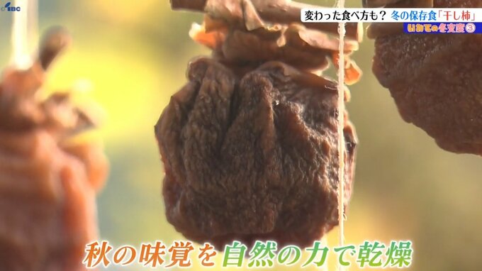 干し柿は秋の味覚を自然の力で乾燥させることで長期保存する昔ながらの知恵がつまった食べ物です。