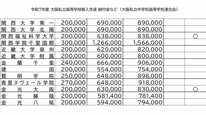 【高校受験】私立高校の「初年度納付金」いくら?大阪府編 無償化ぴったり授業料63万円が21校 48万円から126万円まで各校特色にあわせて 早稲田摂陵は早稲田大阪へ校名変更 毎日放送 2024年11月27日(水) 12:57 国内 暮らし・マネー 初年度納付金はいくら?【関西大学や関西学院千里国際】