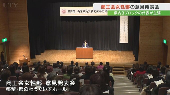 山梨県内の商工会女性部の意見発表会が都留市で開かれ、各ブロックの代表が活動の成果を発表しました。