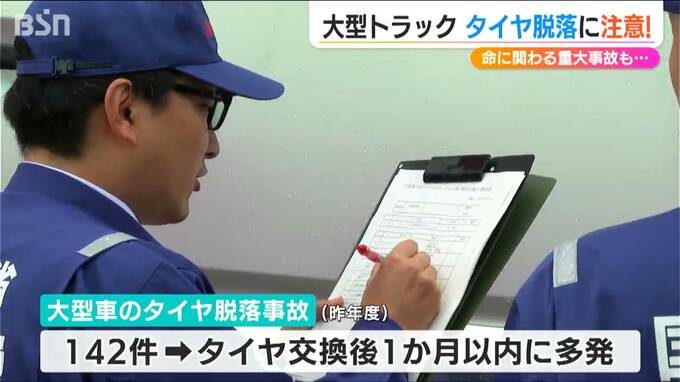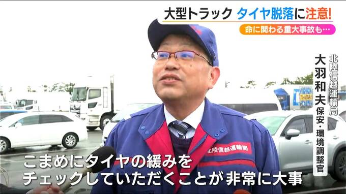 こうした“脱落事故”はタイヤの交換時に発生することが多いことから、27日には新潟市西区のトラックステーションで、大型トラックのドライバーを対象にした啓発活動が行われました。