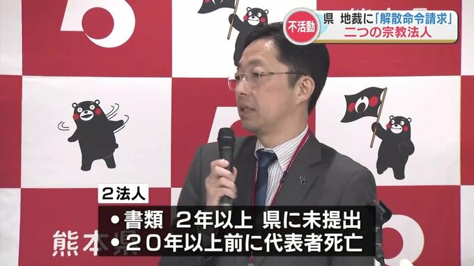 「宗教法人としての活動がない」として、熊本県が二つの法人について裁判所に解散命令を請求しました。熊本県が裁判所に解散命令を請求をしたのは、県内にある二つの宗教法人です。宗教法人法では、役員の名簿や土…