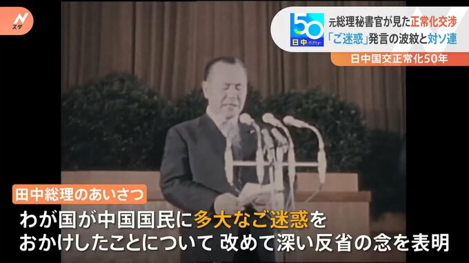 「(周首相から)ご迷惑という、それじゃあ通らないと噛みつかれる。(田中総理は)一生懸命“迷惑というのは、いろいろな意味があって”深刻に受け止めて謝っている場合もある」