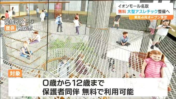 無料の大型アスレチックが整備される見通しとなったのは、イオンモール名取です。2階と3階の吹き抜け部分にネットを張って子どもたちが自由に遊べる空間をつくります。デジタル技術を使ったパネルなども設置する予定です。対象は、0歳から12歳までの子どもたちで保護者同伴で無料で利用できます。工事費用は、イオンモールが負担し、名取市は、利用者の見守りや点検などの運営を担います。来年4月中旬のオープンが予定されていて、名取市は12月開会する議会に関連予算案を提出します。