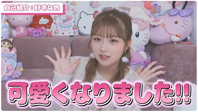 更に、「『ピンク』『キティちゃん』が大好きで集めていたら、こんな風にめちゃめちゃ派手に可愛くなりました」と、自室を解説しました。