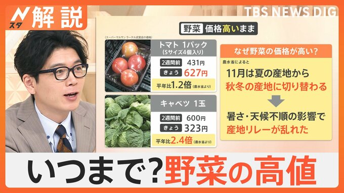 鍋料理などで欠かせないキャベツや白菜がいま、高騰しています。一体何が起きているのでしょうか。小笠原亘 キャスター:野菜の高値が止まりません。ということで、スーパーマルサンさんに伺いました。トマトは1パ…