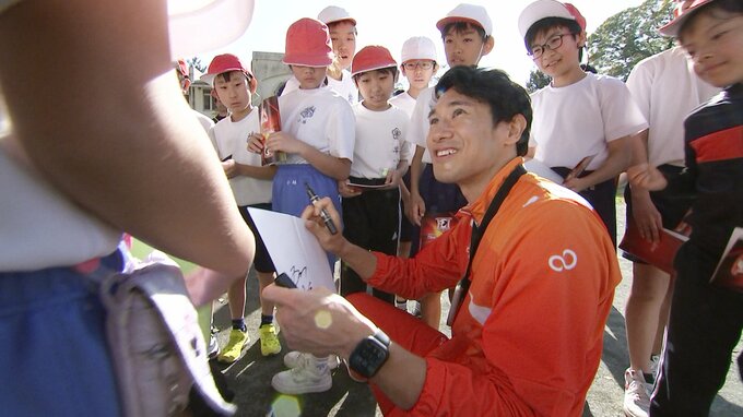さらに両選手も「鬼ごっこ」に参加し、生徒たちと追いかけっこ。子供たちのハツラツとした笑顔とエネルギーを前に、石川は「すごくパワフル。みんな元気で、こちらもすごく元気をもらいました」田中は「すごく人懐っこい子が多くて、地元の子を見ているような、健やかに育ってと思って見ていました」と、この陸上教室を通して、子供たちからパワーを受け取っていた。