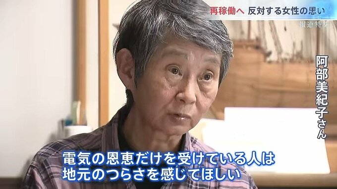 「よく立地自治体には、交付金がいっぱい下りて良いとほかの地域の人からは言われますけど、そういう人はリスク、いざとなったら何もかも置いていかなければいけない、そういう思いを感じたことがないからじゃないかな。電気の恩恵だけを受けている人はもうちょっと地元のつらさを感じてほしい」