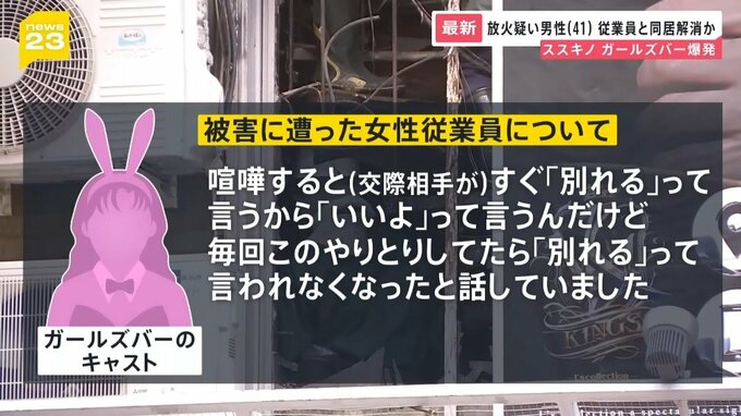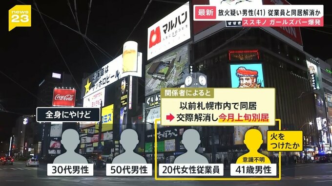 関係者によると、火をつけたとみられ、現在は意識不明の41歳男性と、やけどをした女性従業員は、以前、札幌市内で同居していましたが、交際を解消。11月上旬に女性が家を出ていたことが新たにわかりました。