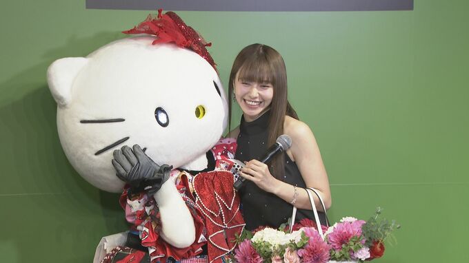 山本さんが話し終えると、ハローキティが結婚祝いの花束を持って登場。キティちゃんから花束を受け取った山本さんは、“すごく綺麗。最近、お花を飾るのにハマっているので嬉しい。ありがとう。いぇーい!”と、声を弾ませました。