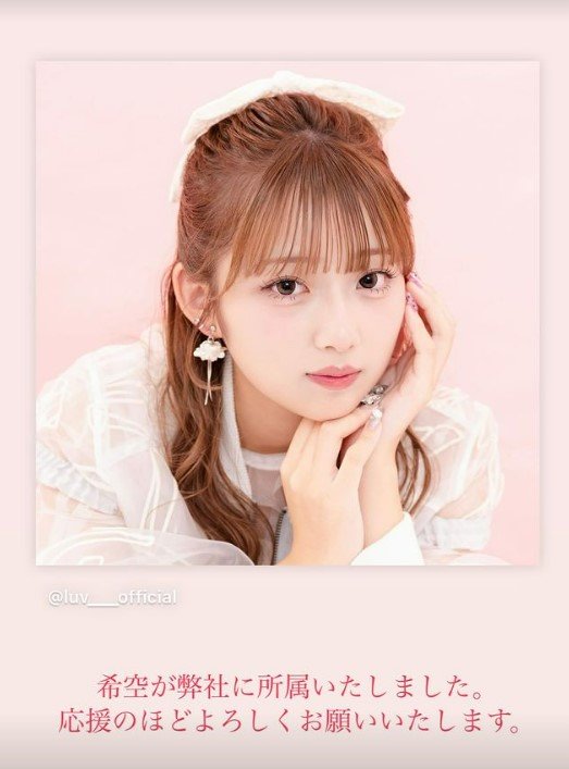 インスタグラムのストーリー機能では「希空が弊社に所属いたしました。応援のほどよろしくお願いいたします。」と、投稿。