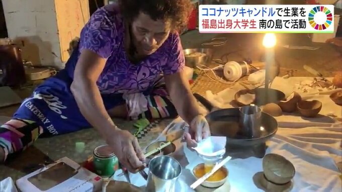 佐藤さん「ココナッツキャンドルを現地にいる人たちに作ってもらって、その人達に雇用をちゃんと創出して、安心して暮らせるような土台と作るという」