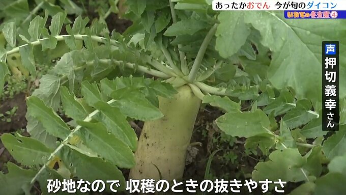 「砂地なので、収穫の時の抜きやすさ、ダイコンの肌もきれいに育ちますし、片手でも抜けるような作業しやすい土地」
