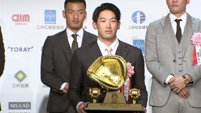 「第53回三井ゴールデン・グラブ賞」の表彰式が28日、都内のホテルで行われ、捕手部門では26年ぶりの日本一となったDeNAの山本祐大(26)が初受賞した。