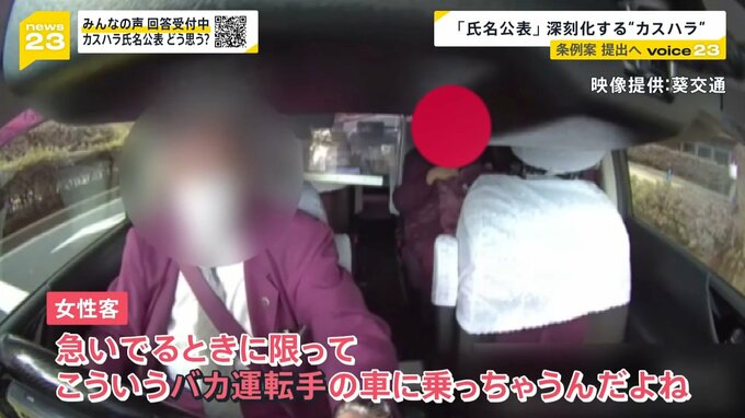 別のタクシーでも、ドライバーに暴言を浴びせる様子が…