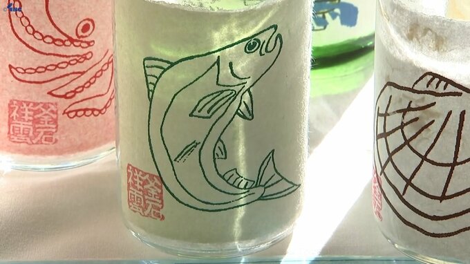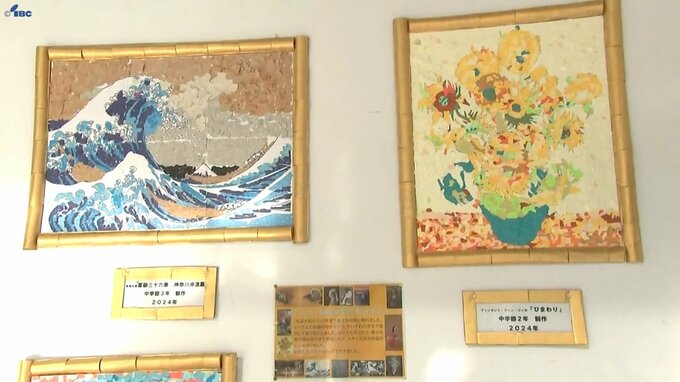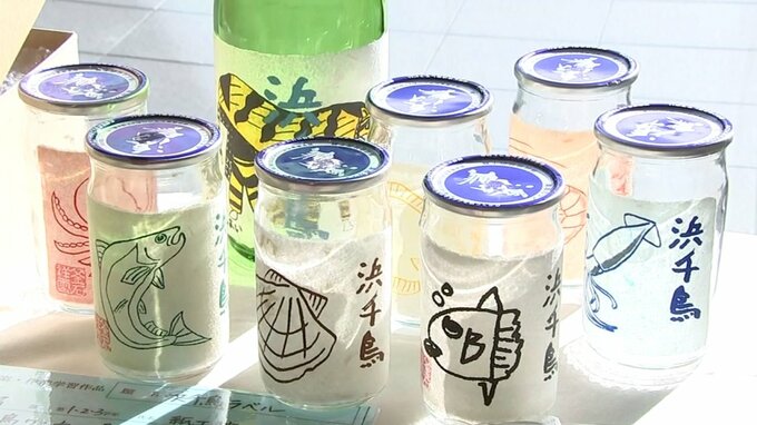 展示されている作品は学校の授業で子どもたちが制作したもので、中には地元の酒造会社の商品パッケージとして実際に使われているものもあります。
