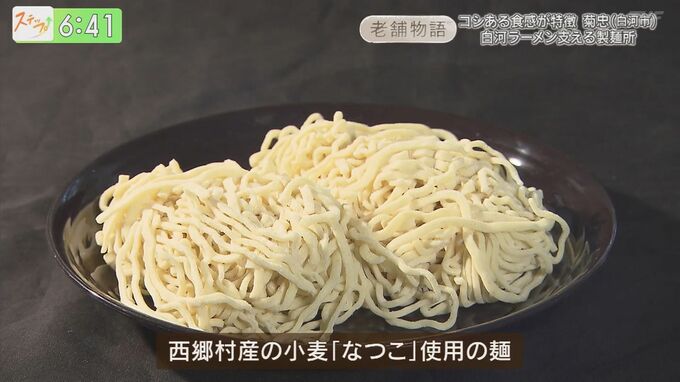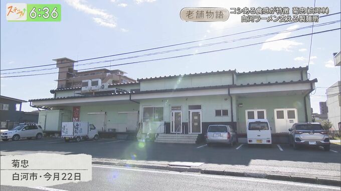 澄んだ醤油ベースのスープにコシのある麺がからむ極上の白河ラーメン。伝統のラーメンに使われる麺を製造する会社が白河市にあります。創業74年を数える「菊忠」。自社工場で製造した麺を市内の飲食店や一般の家庭に向けて販売しています。