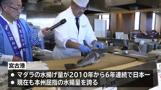 宮古港のマダラの水揚げ量は、2010年から6年連続で日本一を達成するなど現在も本州屈指の水揚げ量を誇っていて、グルメフェアではその魅力をPRします。