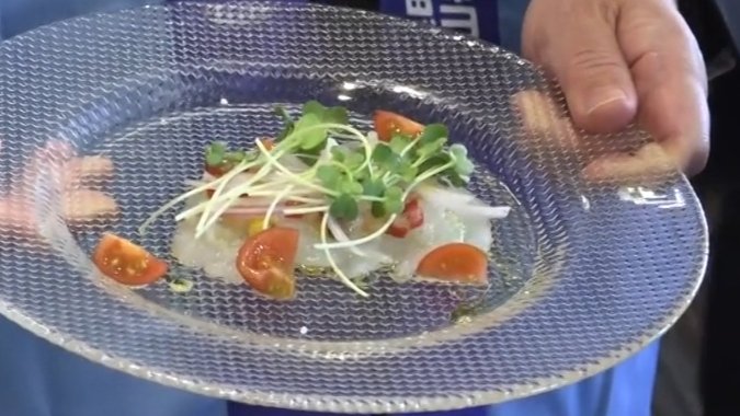 セレモニー会場のホテルも参加店舗の1つで、29日は提供が予定されているカルパッチョの試食会も行われ、参加者が味わっていました。このグルメフェアは2025年1月末までの2か月間行われます。