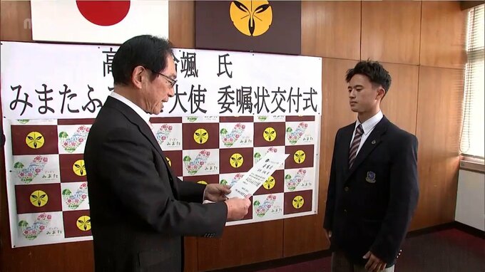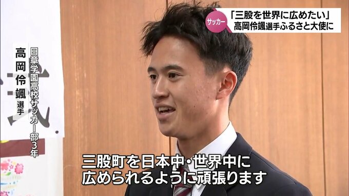 宮崎県三股町出身で日章学園高校サッカー部の高岡伶颯選手が、「みまたふるさと大使」に就任しました。