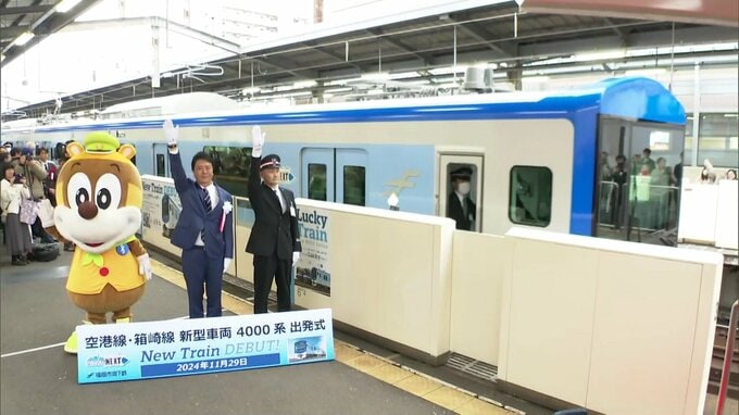 福岡市地下鉄の空港線・箱崎線で、29日、新型車両の運行が始まりました。車両内は座席幅が広く、フリースペースも設けられ、快適な空間となっています。福岡市 高島宗一郎市長「地下鉄4000系車両、出発進行!」 …
