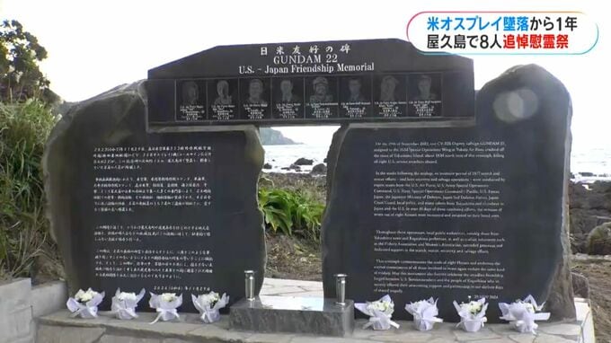 屋久島沖でアメリカ軍のオスプレイが墜落し、乗員8人全員が死亡した事故から、きょう29日で1年です。屋久島では29日、軍による慰霊祭が開かれました。オスプレイを巡って今もトラブルが相次ぐ中、地元では不安の声…