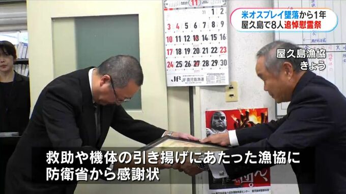 また、当時、救助や機体の引き上げにあたった屋久島漁協に、防衛省から感謝状が贈られました。