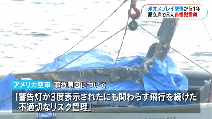 屋久島沖でアメリカ軍のオスプレイが墜落し、乗員8人全員が死亡した事故から、きょう29日で1年です。屋久島では29日、軍による慰霊祭が開かれました。