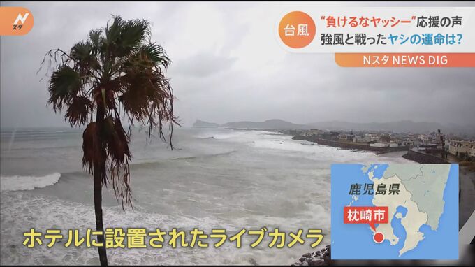 各地で猛威をふるった台風14号。そんな中、話題になっているのが強風で激しく揺れる1本のヤシの木。鹿児島県枕崎市のホテルに設置されたライブカメラの映像なのですが…