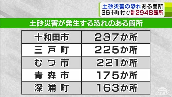 青森県は土砂災害が発生する恐れのある箇所について調査結果を発表しました。県全体では、36市町村であわせて2948か所に上っています。