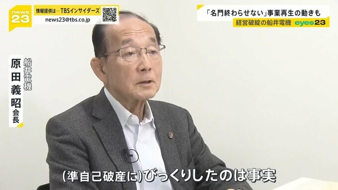 前の社長から引き継ぎ、2024年9月に刷新された新体制で船井電機の会長に就任した元環境大臣の原田義昭氏は、準自己破産の申請について「当日まで知らなかった」と話します。