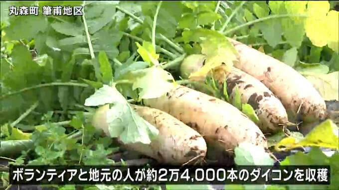 宮城県丸森町で、特産の「へそ大根」の仕込みが始まるのを前に11月30日、ボランティアも手伝ってダイコンの収穫が行われました。丸森町の筆甫地区にある畑で、町内外から訪れたおよそ30人のボランティアと地元の人…