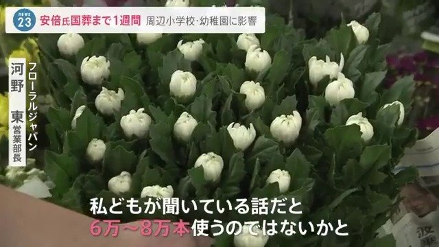 「国葬で使用する分はもう多分買われている。私どもが聞いてる話ですと6万から8万本使うのではないか」